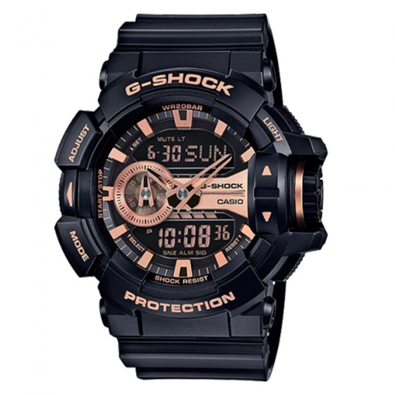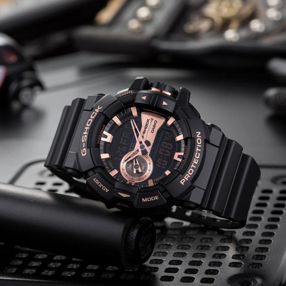 超人氣大錶徑GA-400系列錶款於初春推出嶄新配色,以金色、玫瑰金和銀色等三種金屬光澤點綴多層次錶盤設計。大型錶冠設計能輕鬆操作各項功能,全系列具備耐衝擊構造、防水200米、LED照明等多項功能。