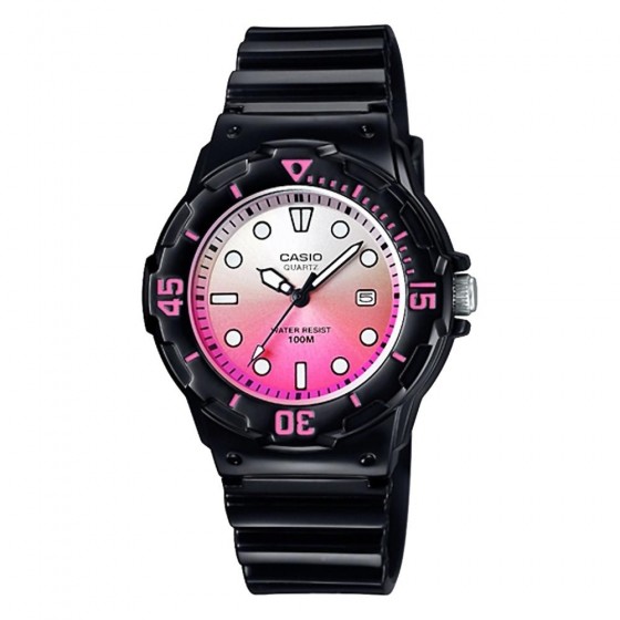 CASIO 卡西歐 LRW-200H-4EVDR 小巧漸層粉紅色潛水風格黑色膠帶運動腕錶