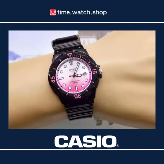 • CASIO 卡西歐 LRW-200H-4EVDR 小巧漸層粉紅色潛水風格黑色膠帶運動腕錶