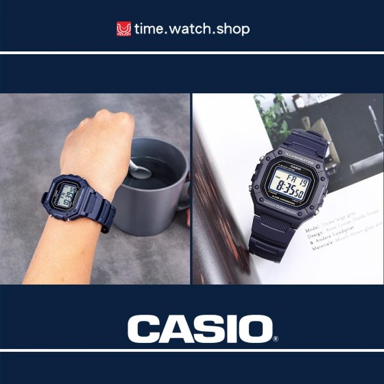 CASIO推出全新W-218H系列,外觀為復古的方型錶殼設計,顏色上提供多種色系選擇,包含黑、藍、綠X黑、黑X紅、黑X橘共5種顏色選擇,而功能上,內建1/100秒碼錶、每日鬧鈴、LED 背光照明、防水50米…等機能。