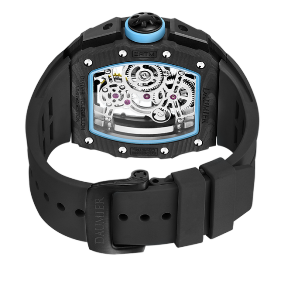 機芯資料及功能:高擺動頻率陀飛輪鏤空設計手動上發條機械機芯,陀飛輪透視劍形橋拱及六角型蜂巢式設計機芯支架,並獲得外觀設計專利